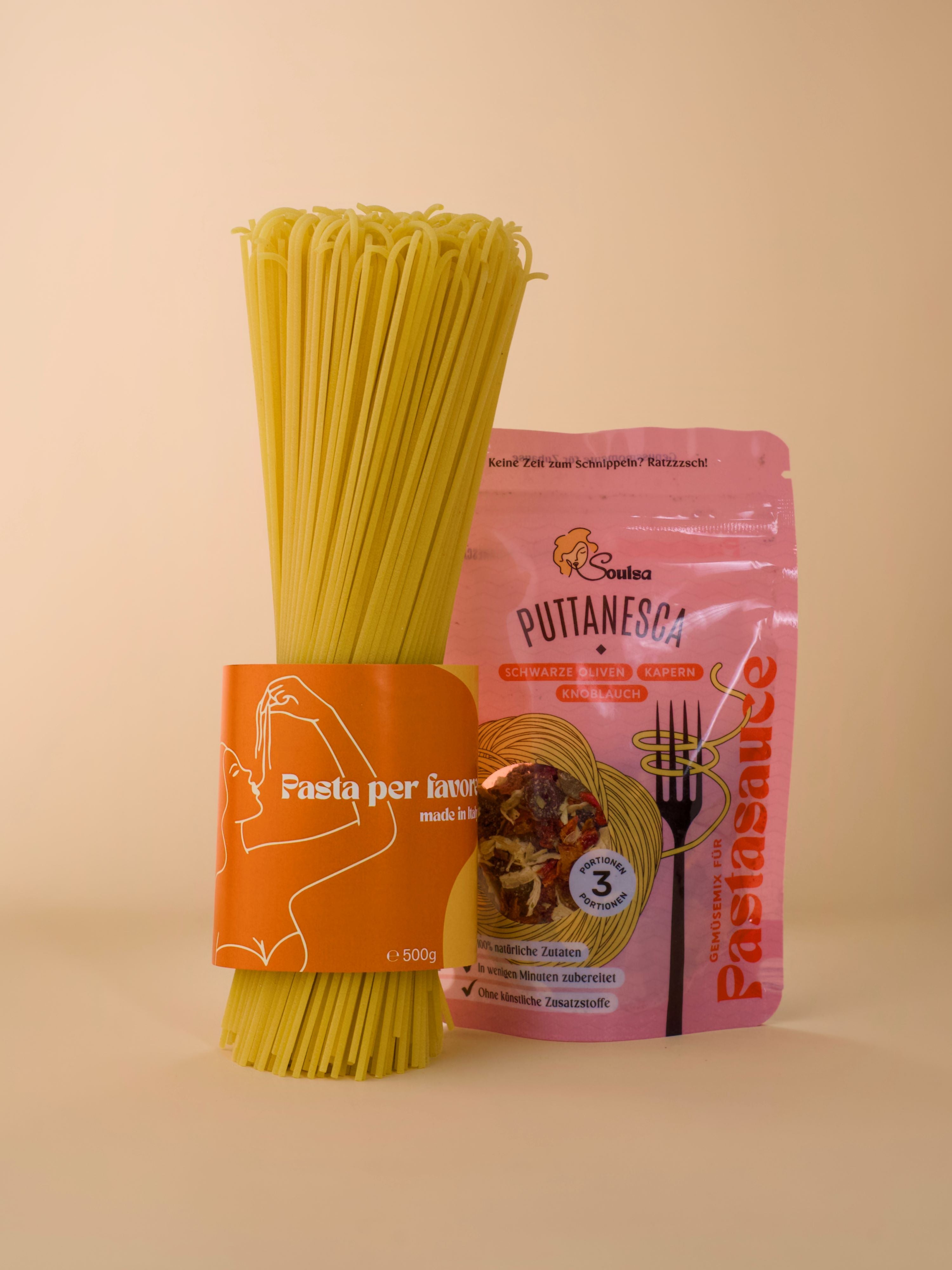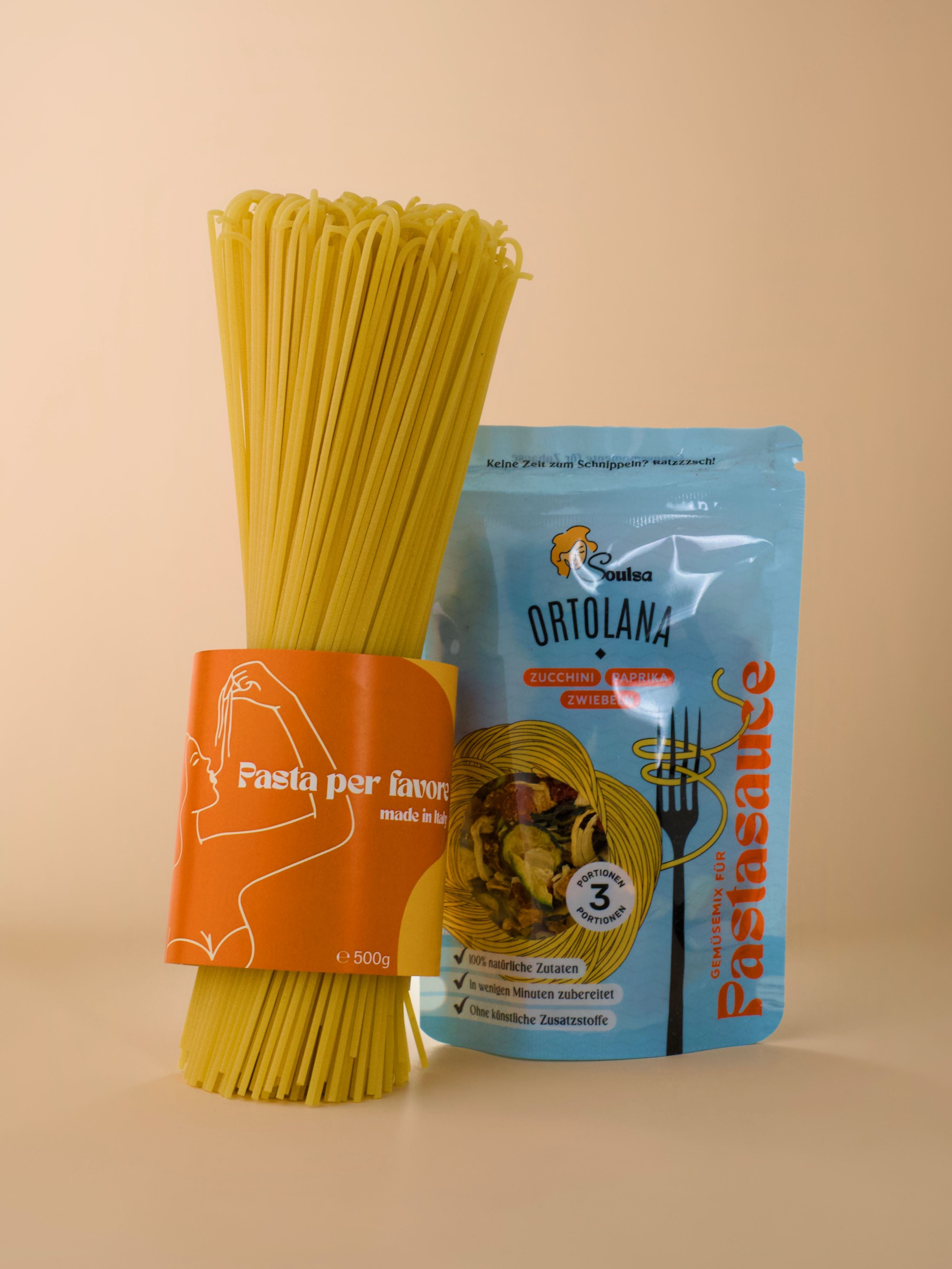 Aus einer Packung Soulsa (70g) ergeben sich circa 3 Portionen Pastasauce - je nachdem, wie viel Sauce du zu deiner Lieblingspasta isst.